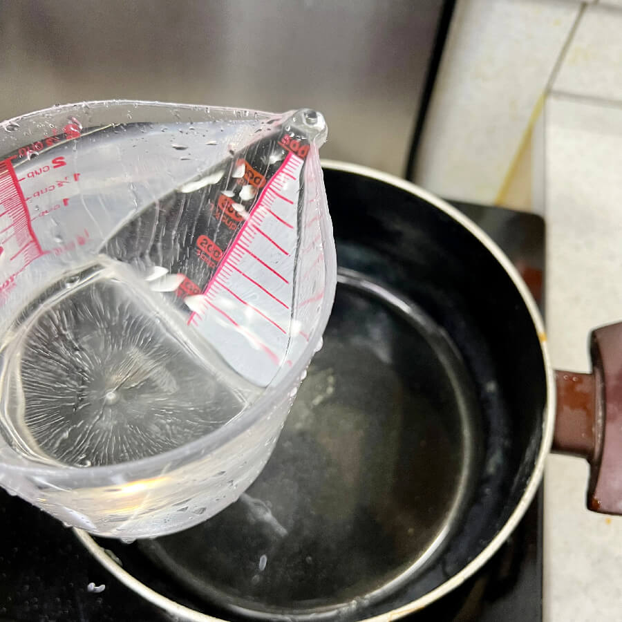 4. 냄비에 물 600ml을 넣고 스프와 볶은 야채들을 넣고 1분간 더 끓입니다.