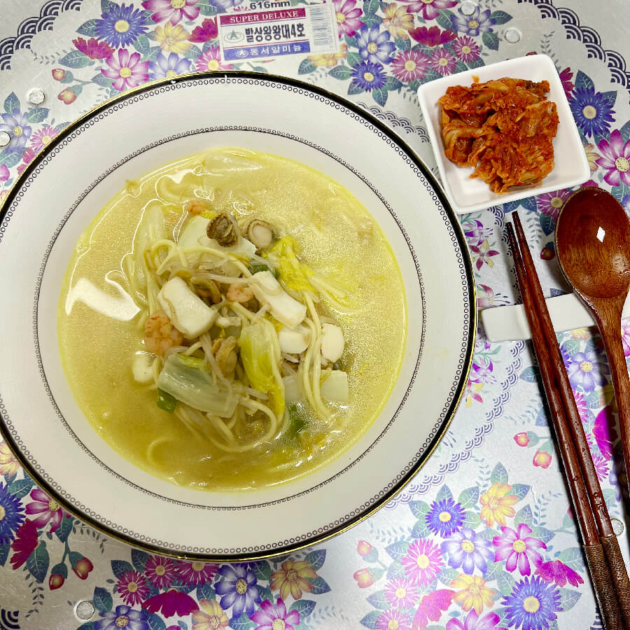 8. 조리방법에는 1분 정도 끓이는데 저는 2분 정도 끓여 주었습니다. 이제 맛있는 백짬뽕이 완성입니다.